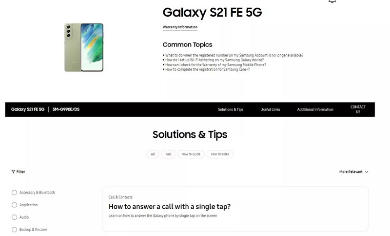 Dalam bocoran terbaru, render resmi Samsung Galaxy S21 FE muncul secara online. Render ini menunjukkan halaman dari situs web resmi Samsung untuk wilayah UEA. Bersamaan dengan itu, perusahaan juga telah mendaftarkan tiga produk casing Galaxy S21 FE di situs.