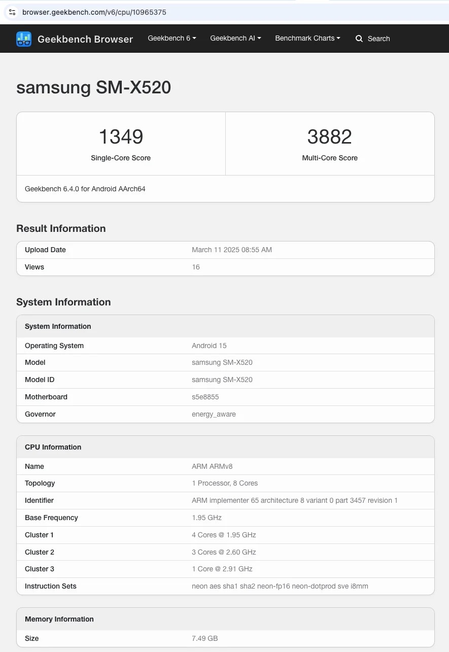Samsung tampaknya siap meluncurkan Galaxy Tab S10 FE. Berdasarkan bocoran benchmark Geekbench, tablet ini akan menggunakan chipset Exynos 1580, chipset baru Samsung yang juga digunakan di Galaxy A56.