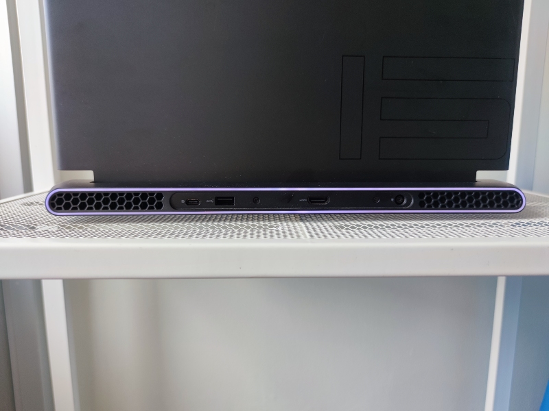 Dan di bagian belakang terdapat satu USB 3.2 Gen 2 Type C, satu port USB 3.2 Gen 1 Type A, sebuah port HDMI 2.1, serta charging port. Dan uniknya, di bagian ujung chargernya terdapat LED yang bersinar ketika tersambung dengan listrik.