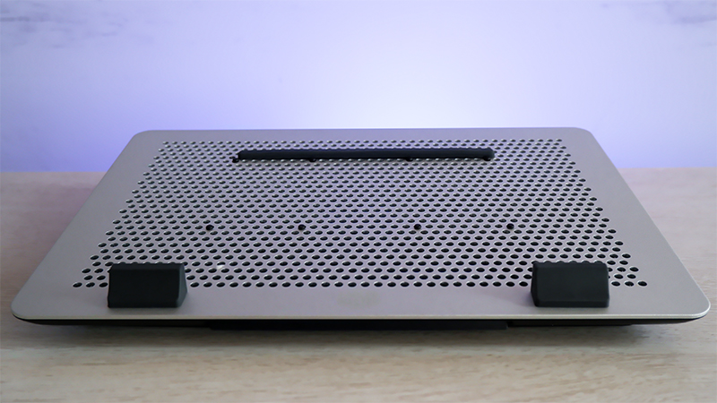 Permukaan penampang seluas 384.6 x 270 mm yang disiapkan untuk meletakkan laptop, didesain berlubang berlapis teknik pelapisan sandblasting. Selain memberikan permukaan bertekstur, desain berlubang ini menawarkan sirkulasi udara yang sangat baik serta membantu melepas panas dengan efektif.