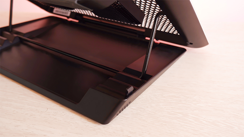 Notepal ini juga menawarkan sudut kemiringan yang bisa diubah-ubah. Hal ini berkat desain dudukan bagian bawah dilengkapi penopang yang bisa mendukung beberapa sudut yang dibutuhkan pengguna.