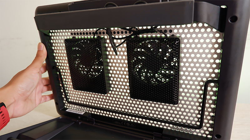 Saking modularnya, Cooler Master MasterNotepal Maker ini awalnya tidak dipasangi kipas pada bagian bawah penampang. Namun jangan khawatir, Anda bisa menemukan dua buah kipas berkecepatan 2000RPM pada paket penjualannya.