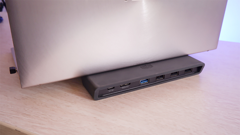 Untuk memberikan dukungan port konektivitas, notepal ini juga menyediakan detachable base station atau base port yang bisa dilepas-lepas. Base port ini terbungkus karet, kalian dapat menggunakannya sebagai penopang keyboard. Namun base station ini juga bisa disatukan dengan MasterNotepal Maker, syaratnya kalian harus melepas lapisan karet pembungkusnya terlebih dahulu.