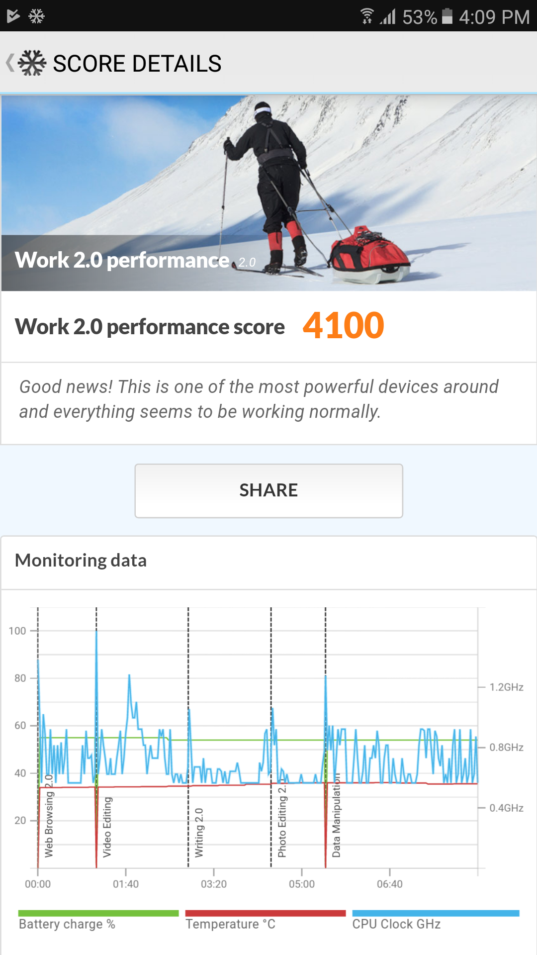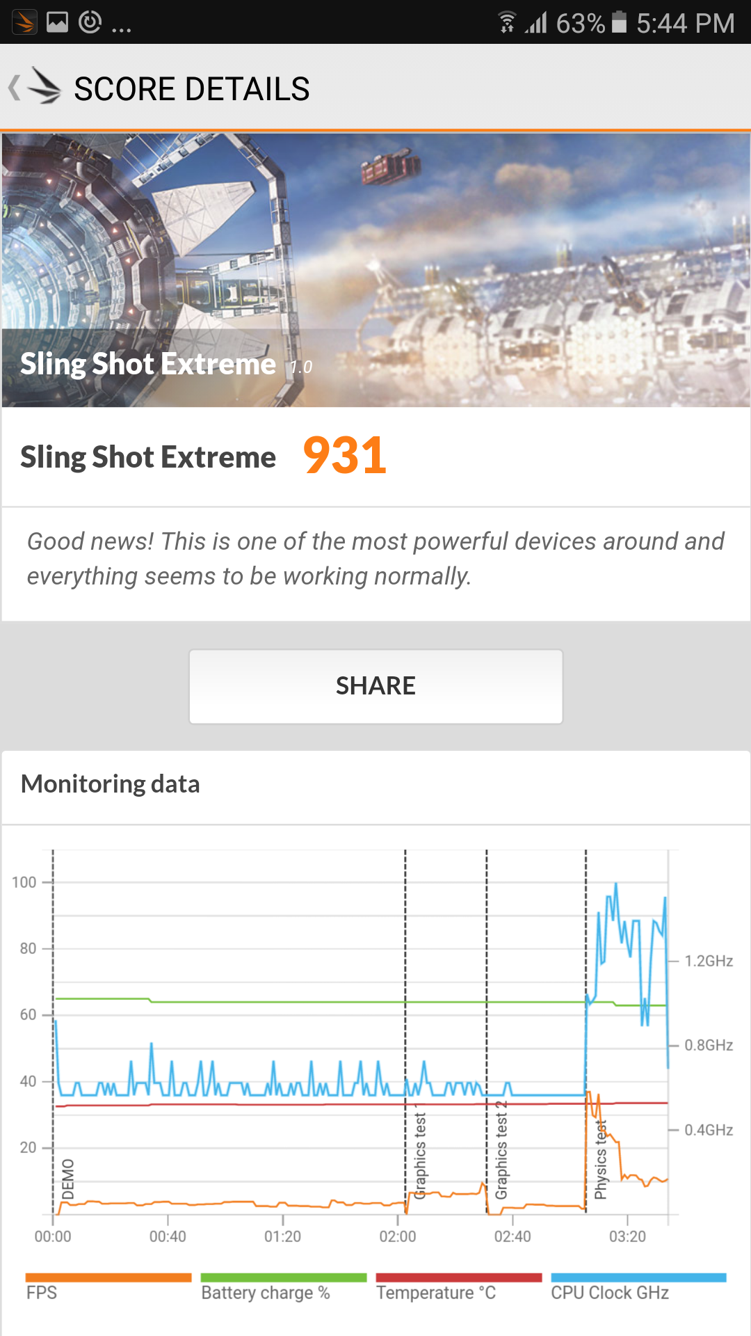 Menggunakan aplikasi benchmark PC Mark for Android, Samsung Galaxy C9 Pro membukukan skor tinggi yakni, 4.100. Lebih jauh lagi, Kami menguji Samsung Galaxy C9 pro dengan aplikasi benchmark, 3D Mark. Berikut hasilnya :