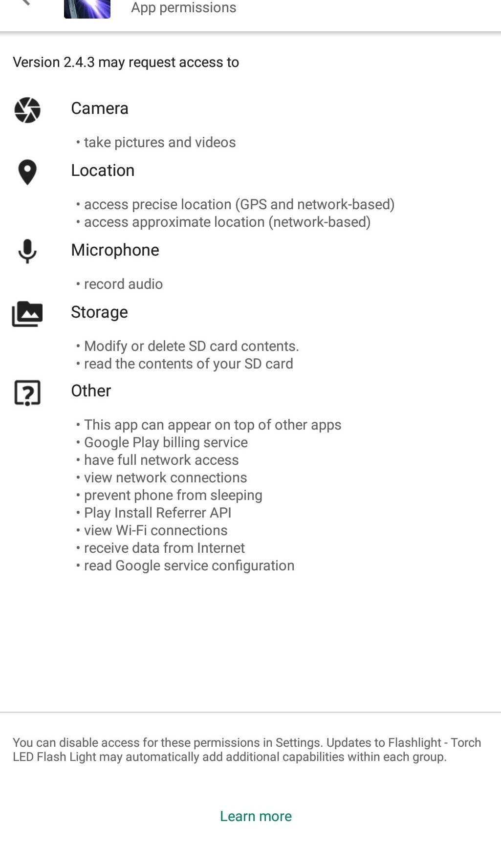 Ok, untuk sebuah aplikasi yang bekerja layaknya saklar untuk menyalakan lampu LED apakah perlu menggunakan resources sampai seperti itu? Jawabannya kembali lagi pada Anda yang menggunakan, apakah Anda siap untuk mengijinkan aplikasi tersebut berjalan pada smartphone Anda?