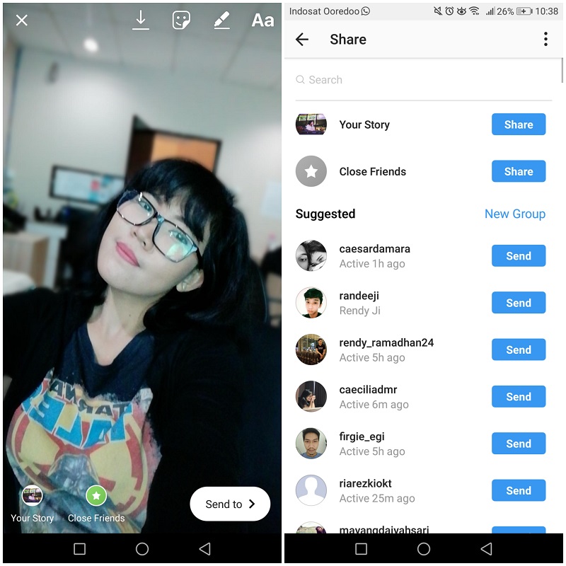Sedangkan untuk membagikan Story Anda, hanya perlu menekan Send to atau tekan Close Friend untuk membagikannya ke teman dekat dan Your Story untuk membagikannya ke Story. Oh iya, Anda juga bisa membagikan Story tersebut pada teman melalui Direct Message, dengan menekan Send to dan pilih siapa saja teman yang ingin kamu bagikan Story melalui DM.