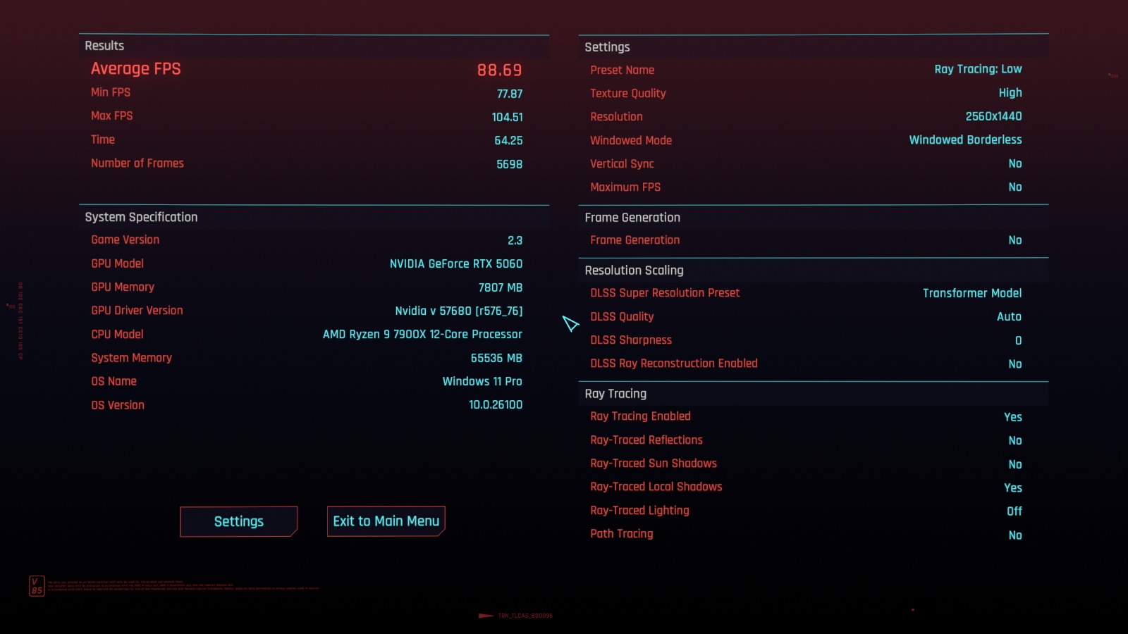 Sedangkan untuk pengujian gaming, hasil pengujian dari Cyberpunk 2077 dengan pengaturan grafis high dengan ray tracing low di resolusi 1440p, GPU ini dapat menjalankannya di kisaran 88 fps, yang dimana sangat playable. Jika kalian ingin bermain di 4K, GPU ini juga masih sangat mampu menjalankannya, namun dalam fps yang lebih rendah.