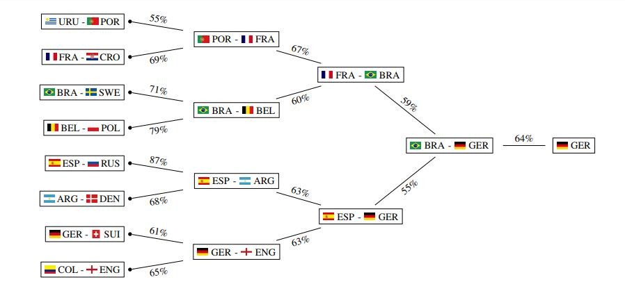 Tim nasional Jerman ternyata harus lolos ke babak perempat final agar peluang menangnya semakin tinggi. Jika tidak, Spanyol yang memiliki peluang terbesar untuk menang. Apapun itu, prediksi ini tidak bisa dijadikan patokan. Namun akan sangat menarik kalau prediksi komputer menjadi bisa diandalkan ke depannya.