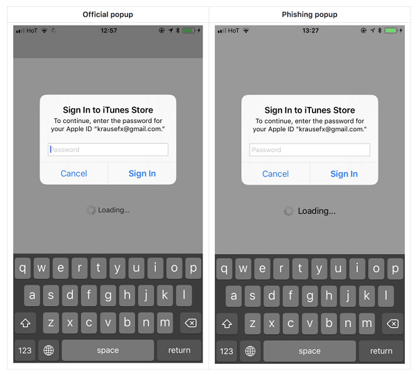 Di laman web pribadinya, Krause mengungkapkan bagaimana cara untuk mendapatkan akun dan password pada perangkat Apple. Hanya dengan menggunakan aplikasi yang memiliki tampilan layaknya notifikasi berbentuk pop up, pengguna Apple diminta untuk mengisi akun dan password.