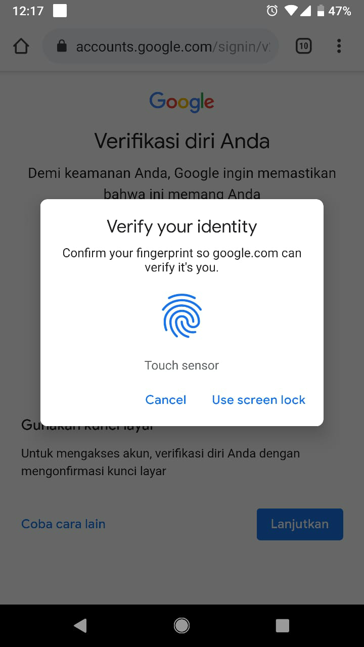 Lalu, akan muncul peringatan berupa “Verifikasi bahwa itu adalah Anda". Setelah itu pengguna harus mengautentikasi menggunakan metode membuka kunci pilihan mereka.