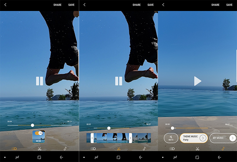 Menariknya, Anda juga bisa mengedit video Super Slow Motion secara langsung. Meski opsinya tidak terlalu banyak, namun Anda sudah bisa memotong bagian video yang direkam serta menambahkan musik ke dalamnya. Samsung bahkan sudah menyediakan sejumlah musik yang bisa digunakan.