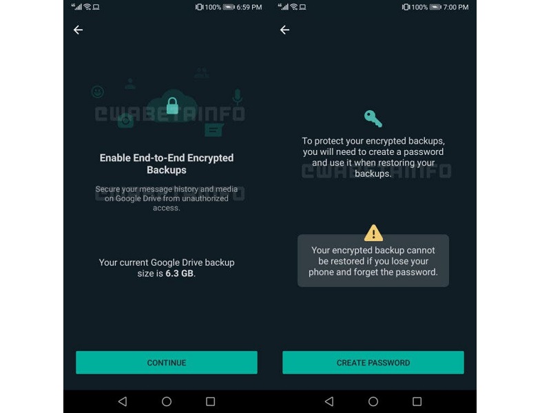 Dikutip dari Gizchina (19/7), untuk mengenkripsi cadangan yang ada di cloud, pengguna harus membuat sebuah kata sandi. Pengguna harus mencatat kata sandi ini, karena apabila lupa WhatsApp tidak akan dapat membantu memulihkan akses dengan cara apapun. Pengguna akan secara permanen kehilangan akses ke cloud.