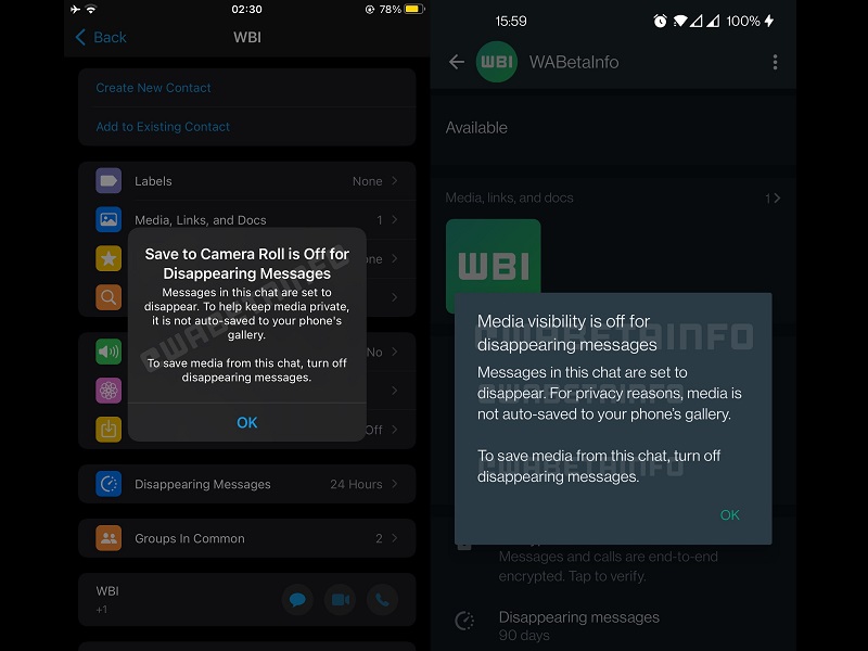 Fitur Disappearing Messages pada WhatsApp nantinya tidak akan mendukung opsi penyimpanan media secara otomatis.